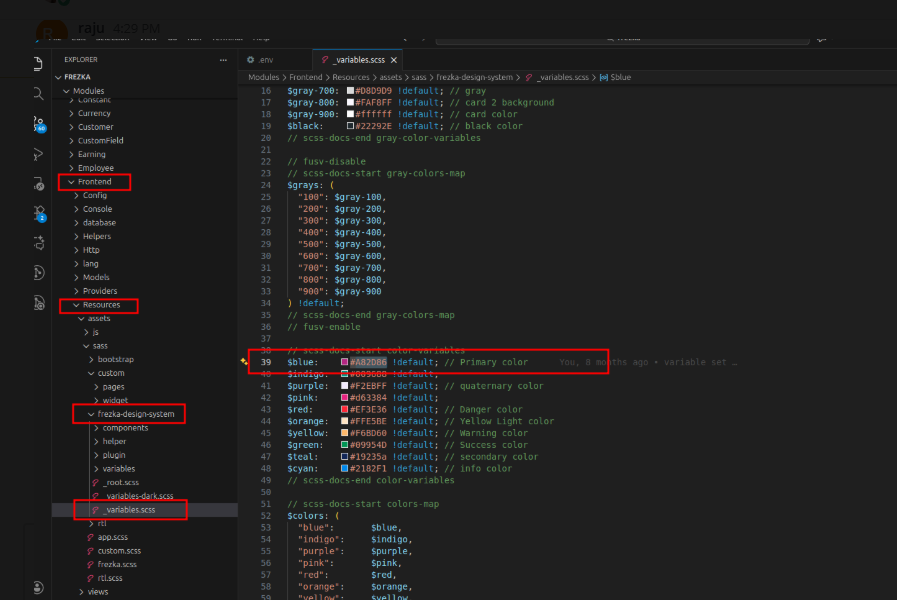 Inside this file, you will find color variables used across the frontend.
