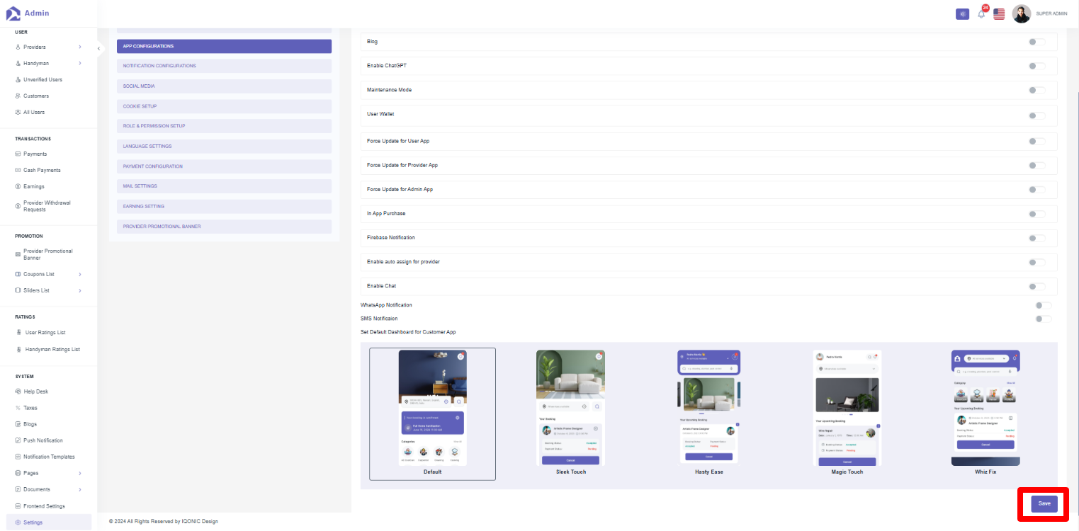 1️⃣ Log in to the Admin Panel and go to Settings > App Configurations