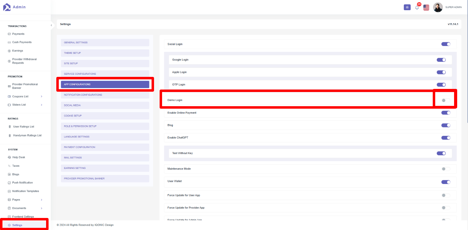 2️⃣ Find the “Demo Login” option and toggle it OFF
