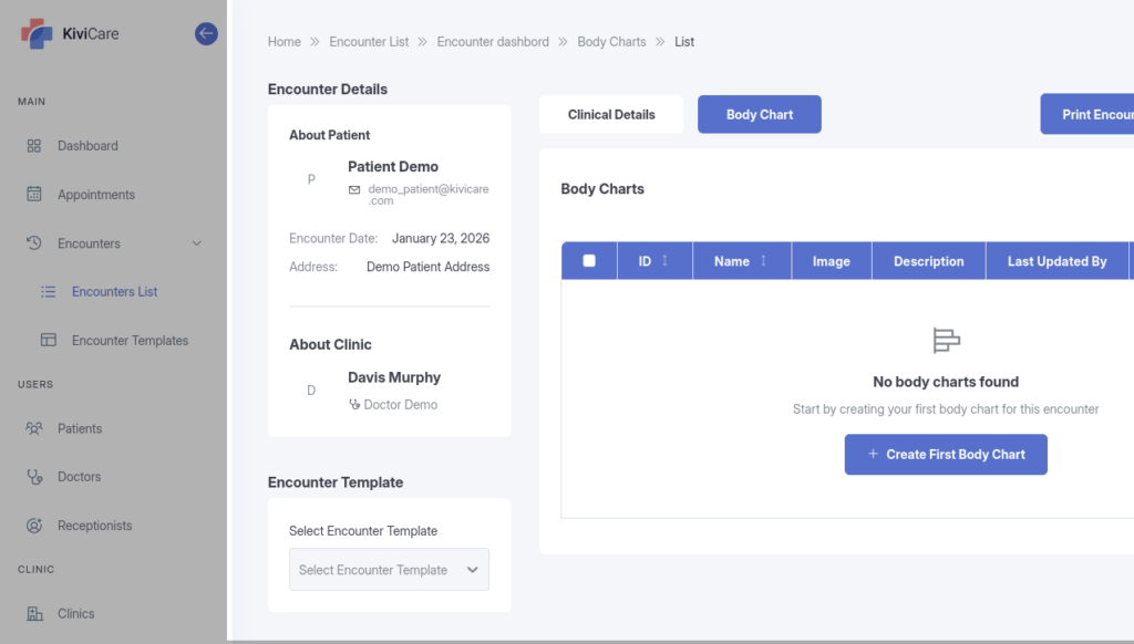 The KiviCare Body Chart Addon is an advanced feature designed for healthcare management systems built on WordPress, specifically integrated with KiviCare. It allows administrators and healthcare providers to visually document patient conditions using body chart diagrams during clinical encounters.