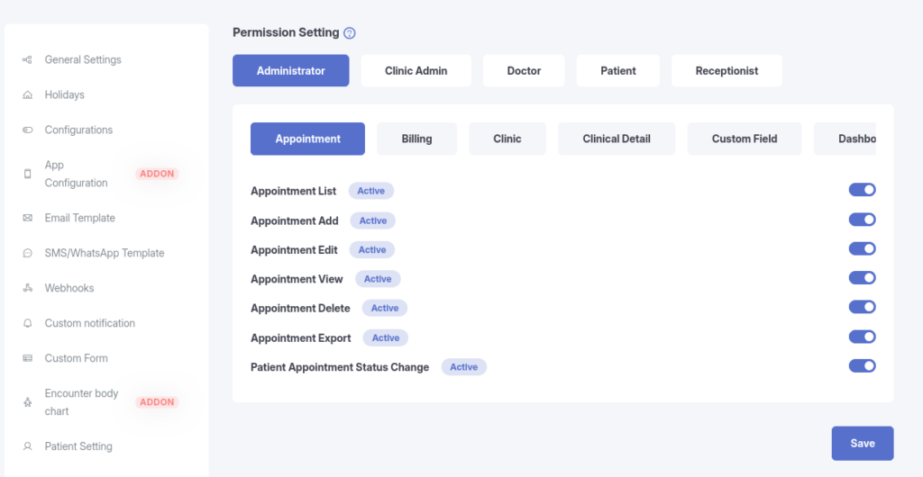 Full access to book, edit, and cancel appointments within their clinic