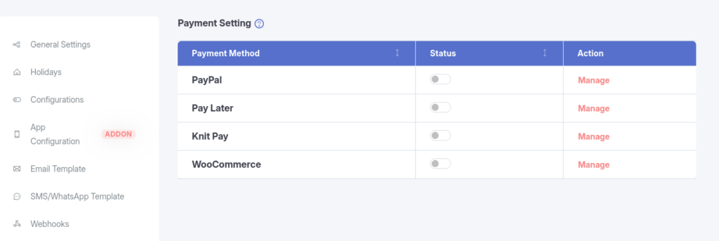 The Payment Settings module allows administrators to configure and manage payment gateways used to collect payments from patients. KiviCare supports multiple secure and flexible payment options, ensuring smooth and reliable transactions for clinics of all sizes.