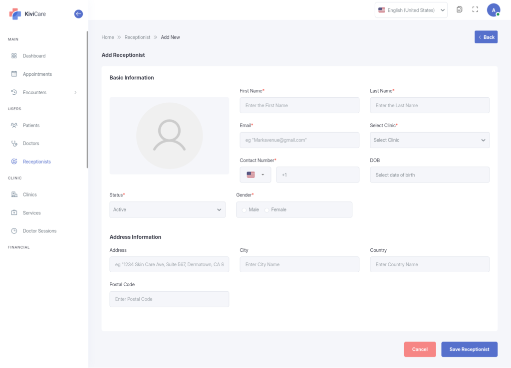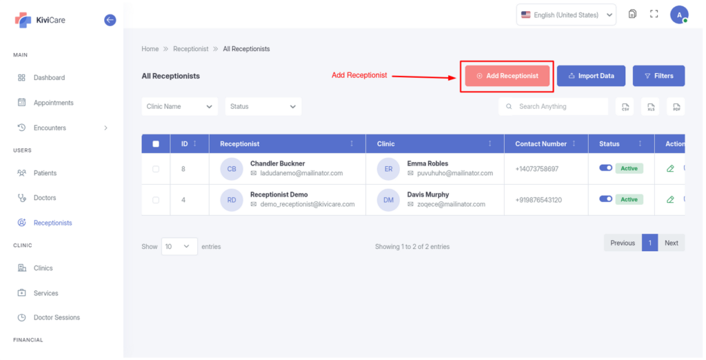 Permissions: Managing receptionists allows you to delegate appointment scheduling and basic patient intake tasks while you oversee the broader operations.