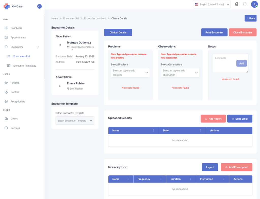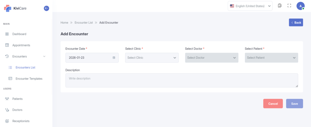 The “Encounter” is the digital record of a patient’s visit. As an Admin, you can view and manage these records to ensure compliance and accuracy.
