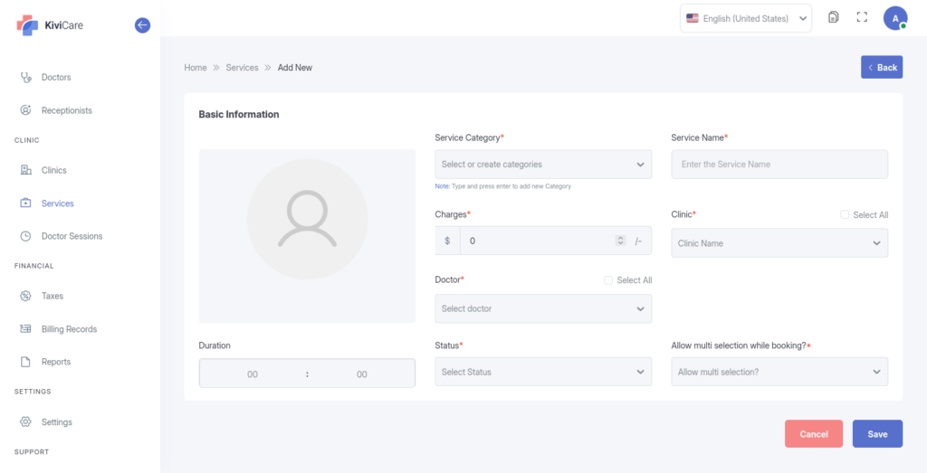 Define the “menu” of medical services your clinic offers. For each service, you can configure: