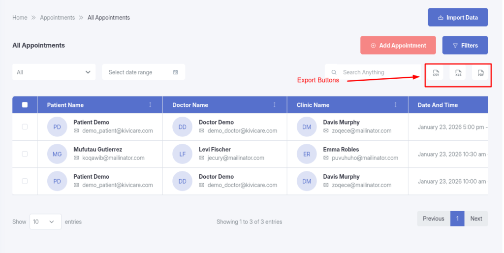 KiviCare Pro’s Bulk Import & Export feature allows you to add hundreds or thousands of records at once, migrate data from other systems, and create backups of your data.