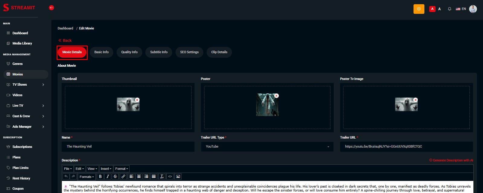 Step 1: Navigate to the Admin Panel and open the Movies module.