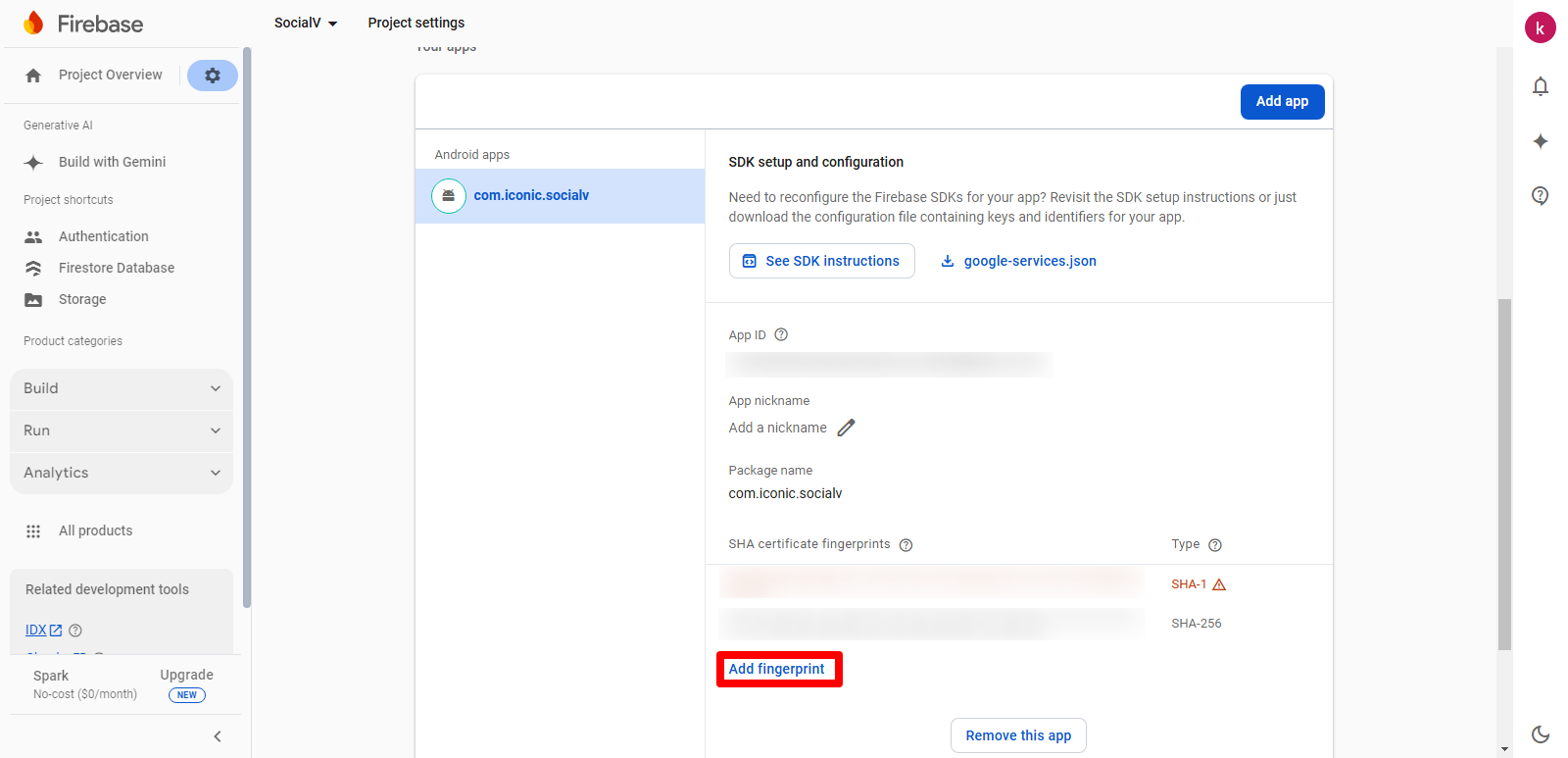 Follow these steps to add a SHA certificate fingerprint for your Firebase Android app initially or if you want to add an additional one: