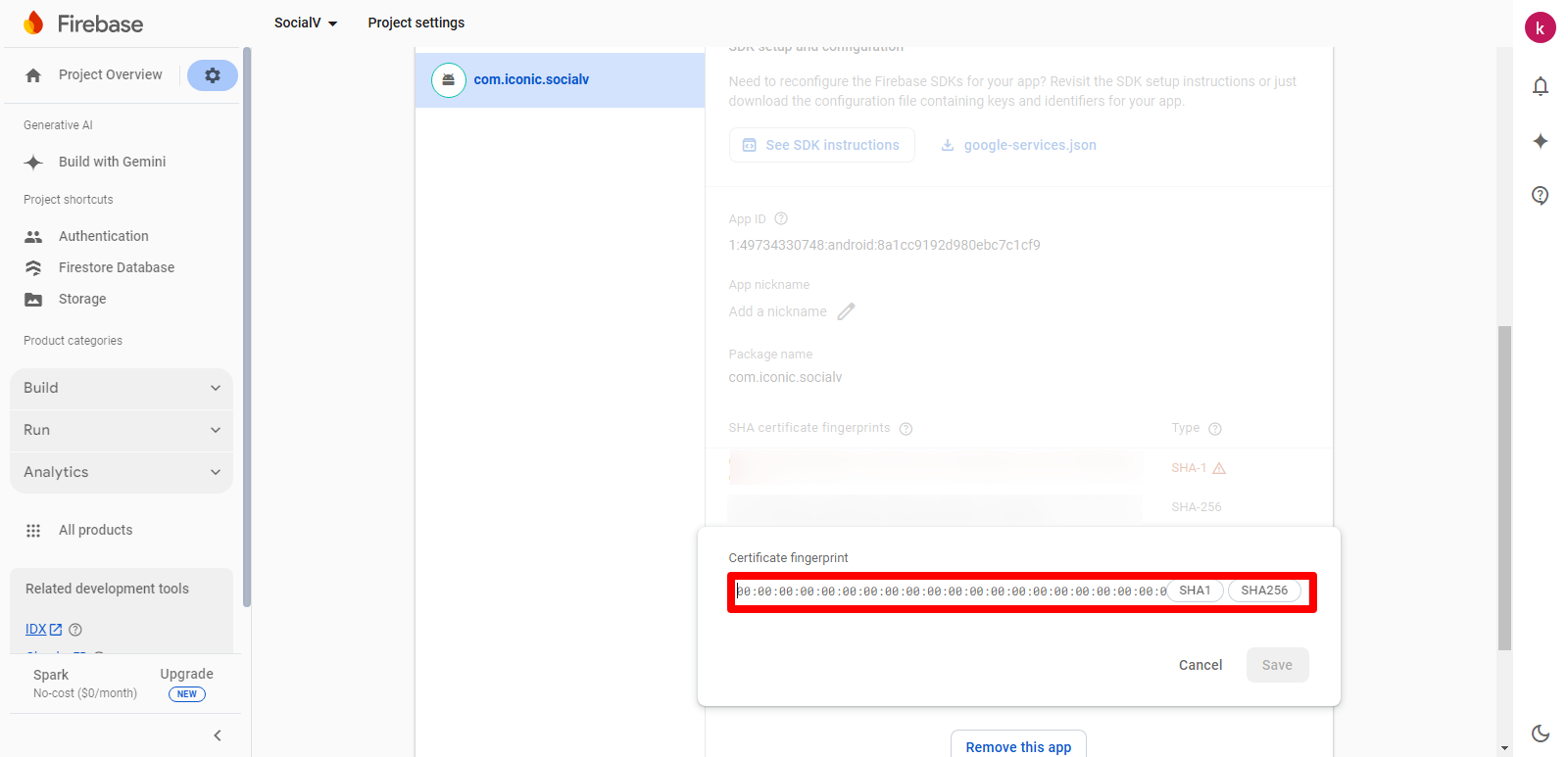 Add SHA fingerprint to Firebase