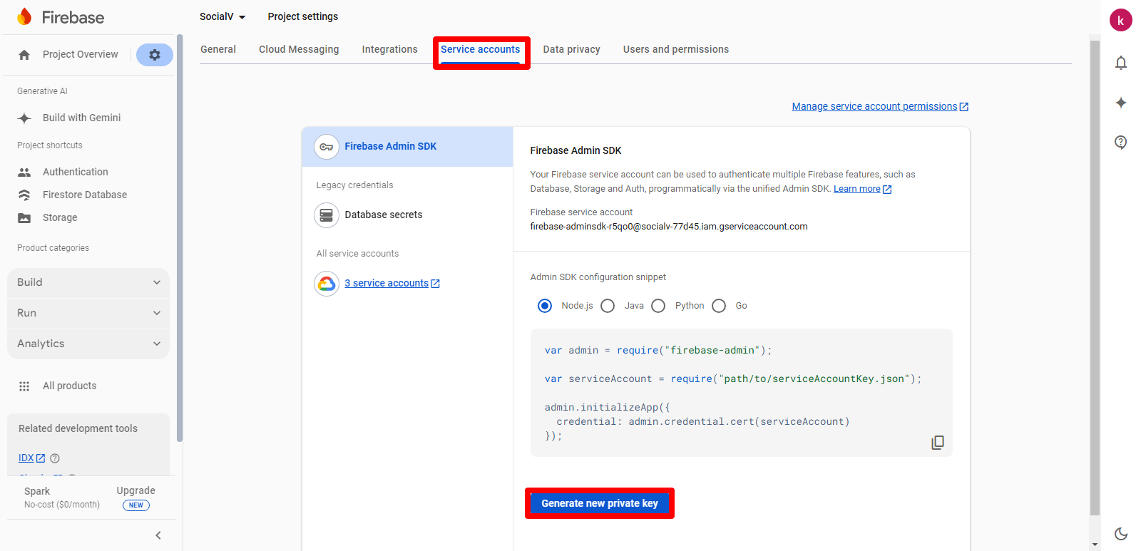 Obtain Firebase Service Account Json file