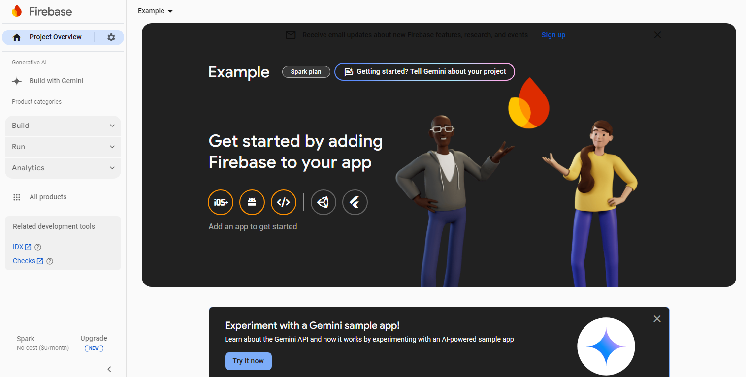 2. Log in to Firebase and select your project.