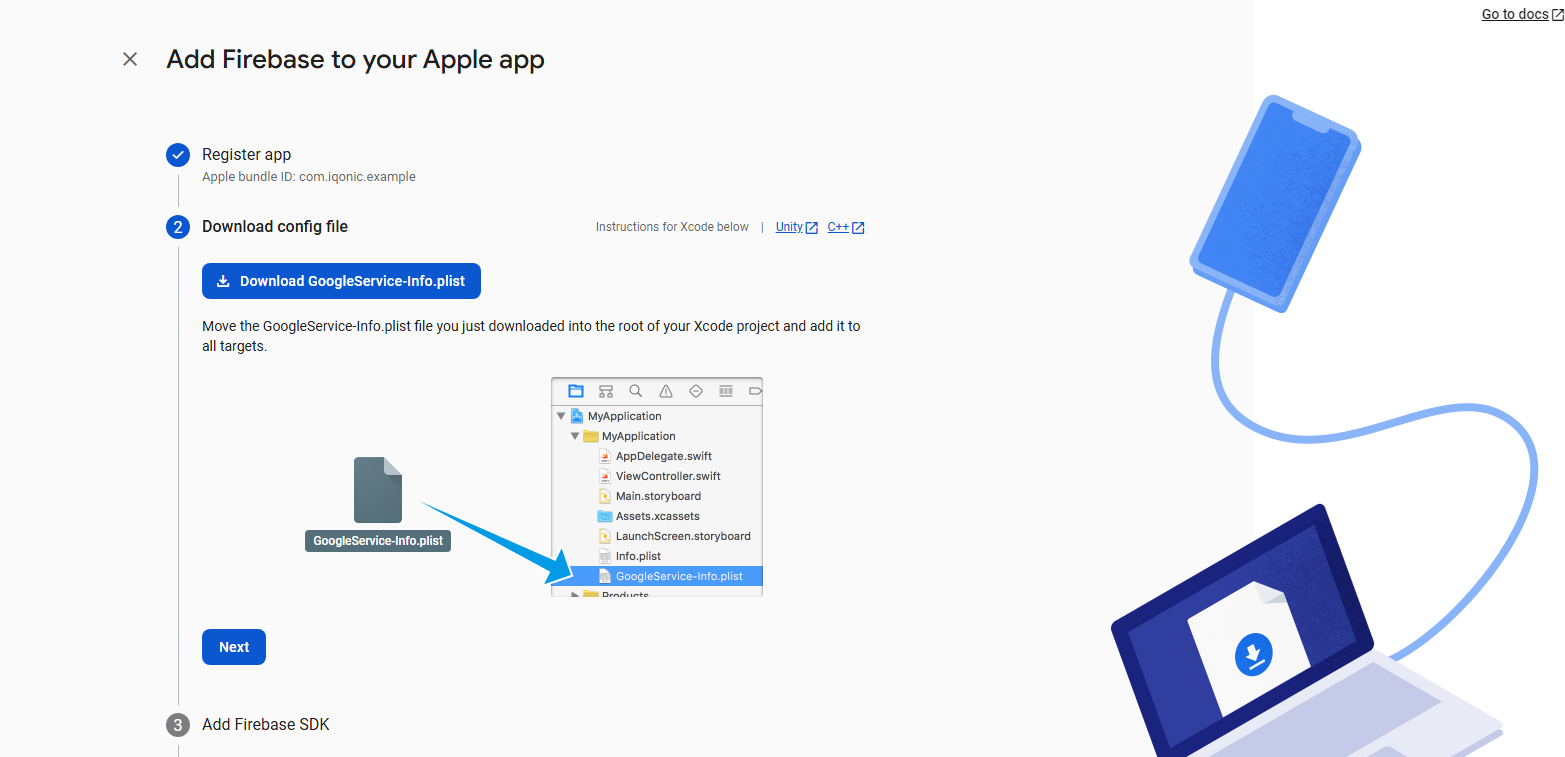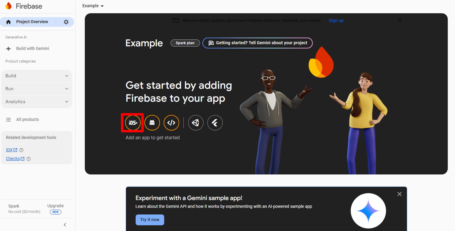 1.On the Firebase console, click the ios icon.