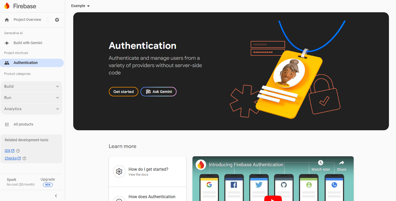 1.Go to Build → Authentication tab and click on Get started.