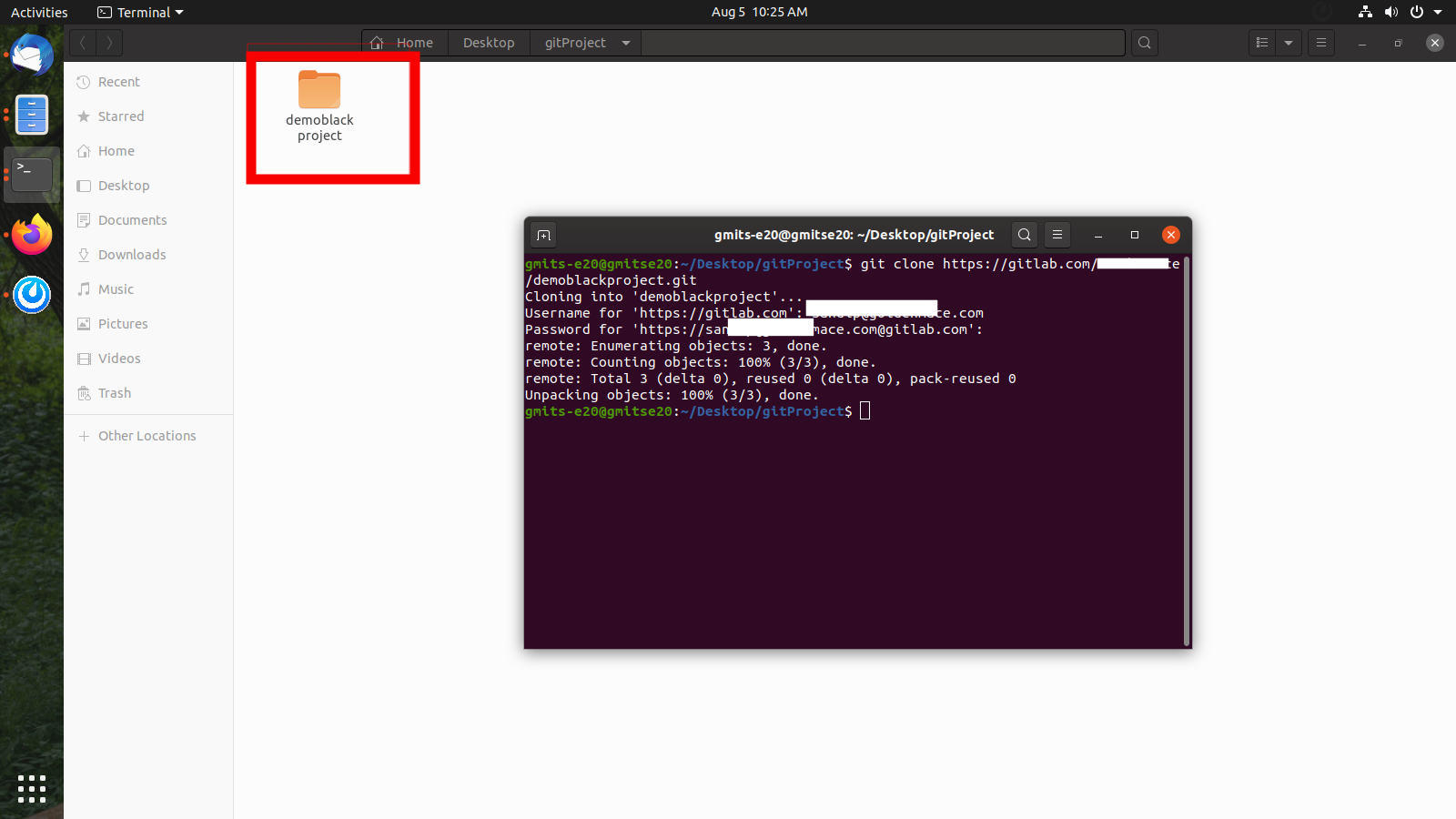 Note: If you remove the project from the local system, then clone the project again from your GitLab server. Follow the same Step 3: Clone your project to your local system.